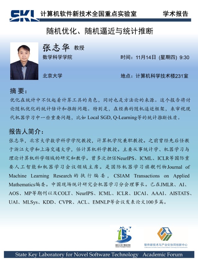2024年11月14日 “软件新技术讲坛” 学术报告 - 张志华 教授
