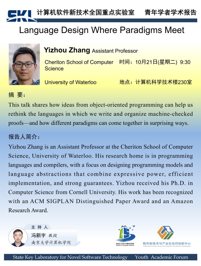 2025年10月21日“软件新技术讲坛”学术报告 - Yizhou Zhang 助理教授