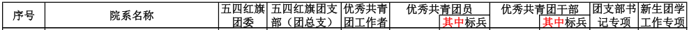 各支部严格按照通知要求和名额分配情况完成五四红旗团支部、优秀团员(标兵)、优秀团干(标兵)、团支部书记专项等申报工作。