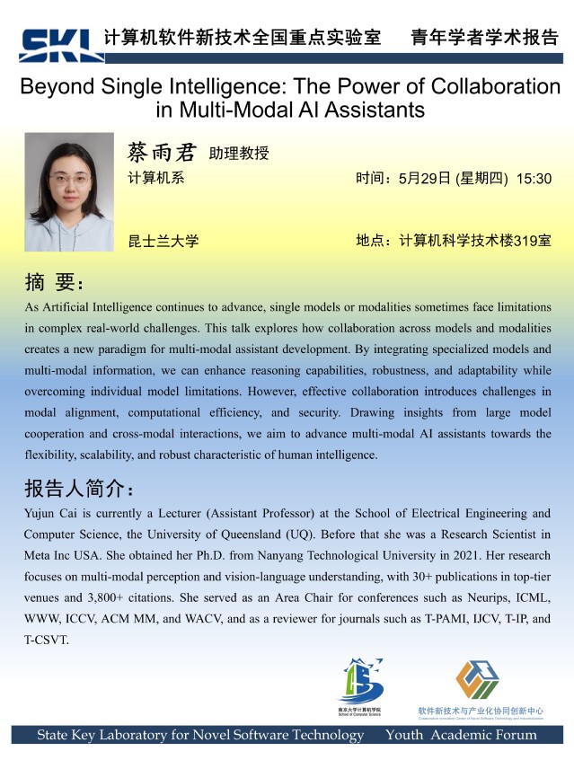 2025年5月29日 “软件新技术讲坛” 学术报告 - 蔡雨君 助理教授