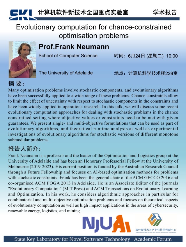 2025年6月24日 “软件新技术讲坛” 学术报告 - Prof. Frank Neumann