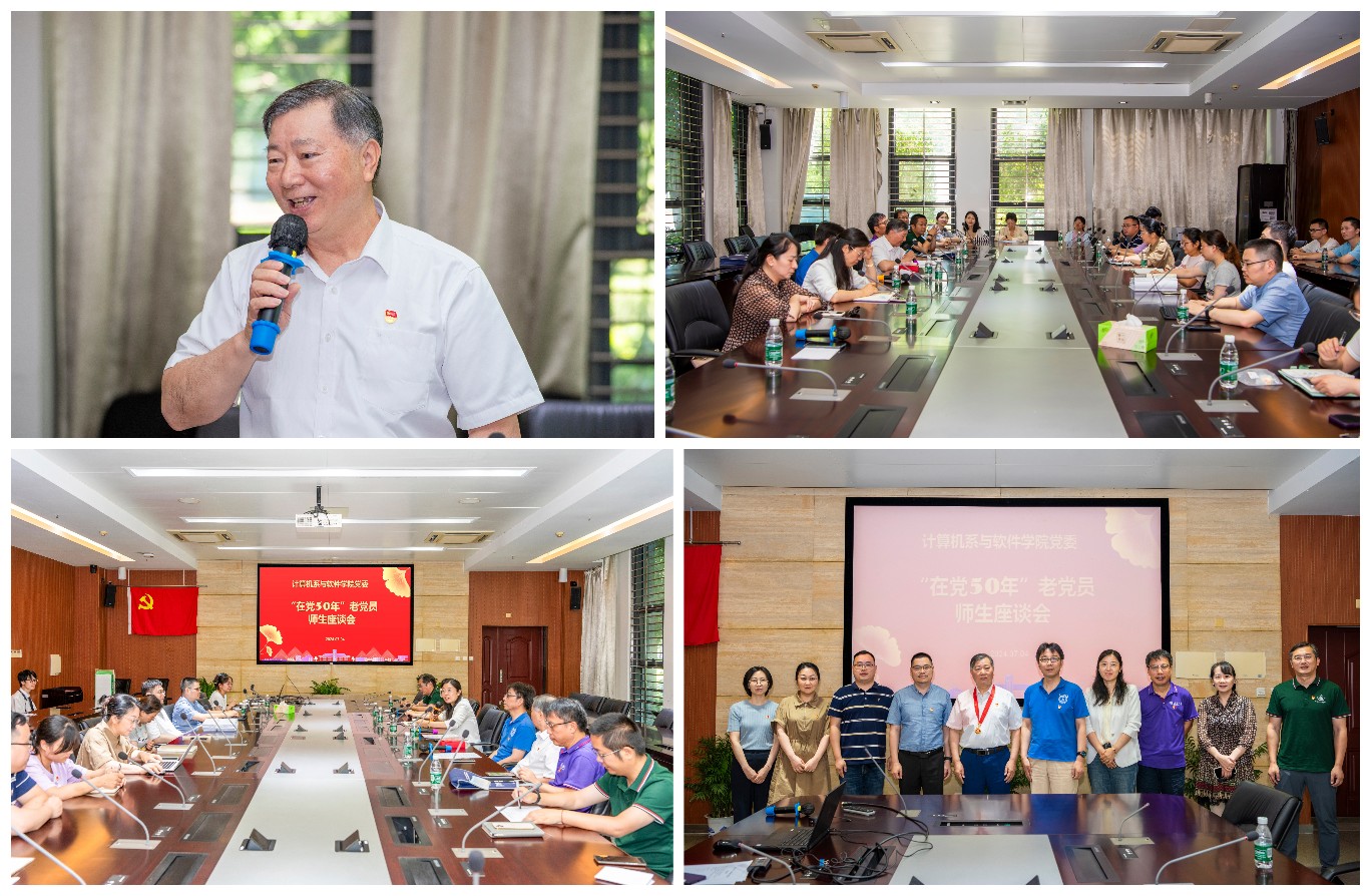 7月4日上午,计算机系与软件学院党委和关工委联合举办“在党50年”老党员和青年师生座谈会。出席座谈会的有党委书记武港山、党委副书记宫玲琳、党委委员张剡、曹迎春以及计算机系应用党支部、系行政系统党支部全体党员、各党支部联络委员、学生党员代表30多人。会议由宫玲琳主持。