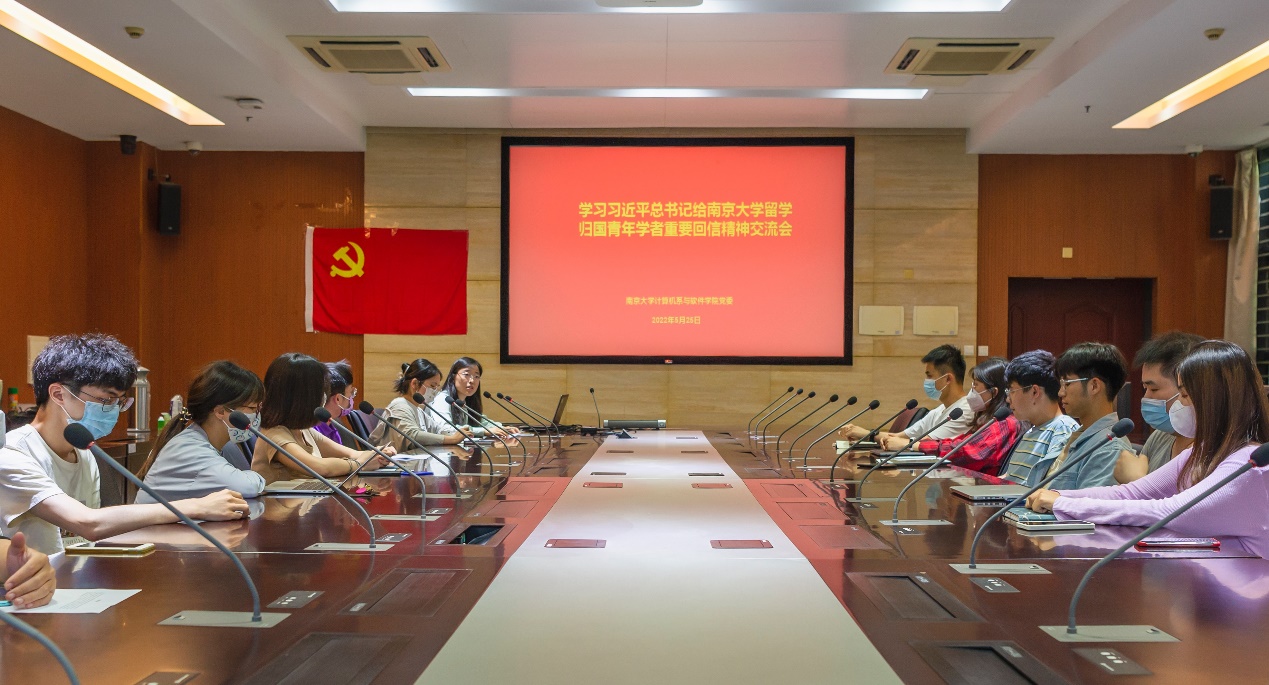 计算机系2021级研究生第一党支部书记张睦婕:我没有过出国留学的经历,但依照个人观察,认识的人大多希望在出国留学后定居国外,然而我们学校有众多优秀的青年教师,学成归国,用心教育我们,同时认真完成科研任务,一再攻克技术难关,带领我国的技术不断进步。我看到向习近平总书记去信的南大老师姚远老师说:“我深刻地感受到,有出国经历的人,心中爱国的情感往往特别浓厚;越是用全球视野看待中国发展,对中国的未来就越有信心。”从这句话中能够看出老师的爱国之情,以及祖国的力量。我也明白了他们为什么放弃国外的生活,选择回国投身科教事业。这种精神需要传承,即使没有机会出国留学,我仍然想要将老师们的爱国精神传承下来。