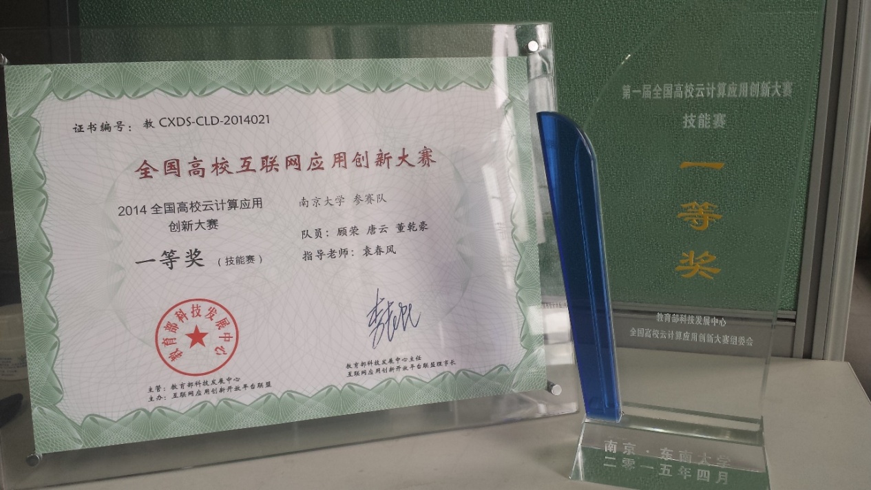 第一届“全国高校云计算应用创新大赛”经过半年多的赛程,于2015年4月22日在东南大学落下帷幕。我系PASA大数据实验室由顾荣、唐云和董乾豪三位同学组建、袁春风老师指导的NJU-PASA队,经过预赛、复赛和总决赛三轮角逐,最终脱颖而出,在全国500多支参赛队伍中,获得技能赛第1名的优异成绩,荣获大赛一等奖! 本次全国高校云计算应用创新大赛是面向全国高校开展的云计算和大数据竞赛活动,由教育部科技发展中心和中国互联网应用创新开放平台联盟主办、东南大学计算机科学与工程学院承办(大赛链接://cloud.seu.edu.cn/contest/index)。大赛自2014年10月正式启动,设置了技能赛、命题赛和创意赛三种竞赛项目,并分为预赛、复赛和总决赛三个阶段,持续进行了为期半年多的赛程。大赛覆盖院校广,共有来自全国东北、华北、华东、华中、华南、西北、西南7个赛区、共147所高校的近500支队伍报名参赛,经过预赛阶段的激烈角逐,最终全国共有42支队伍进入复赛。2015年4月21日,大赛三个竞赛项目的所有决赛队伍会师东南大学,进行了最后的总决赛答辩。经过预赛、复赛和总决赛三个阶段的角逐,大赛三个竞赛项目共决出特等奖1名,一等奖4名,二等奖10名,三等奖18名。 本次大赛的技能赛项目赛题内容是大数据分析与算法设计,共设置了4道基于Hadoop和Spark的大数据分析与算法设计赛题。在全国范围内共有212支队伍报名参加了技能赛。经过预赛阶段的角逐,全国各赛区最终有12支队伍进入技能赛全国总决赛。总决赛阶段,在综合预赛和复赛比赛结果以及决赛现场答辩成绩的基础上,最终决出了技能赛12支决赛队伍的名次,并决出一等奖1名,二等奖3名,三等奖5名,其中,我系顾荣、唐云和董乾豪三位同学组成的NJU-PASA队位列12支决赛队伍之首,摘得技能赛桂冠,荣获大赛一等奖。 此外,我系由由孔繁宇、温开源、邱维民、朱浩仁四位同学组建、钱柱中老师指导的队伍获得云计算命题赛三等奖。