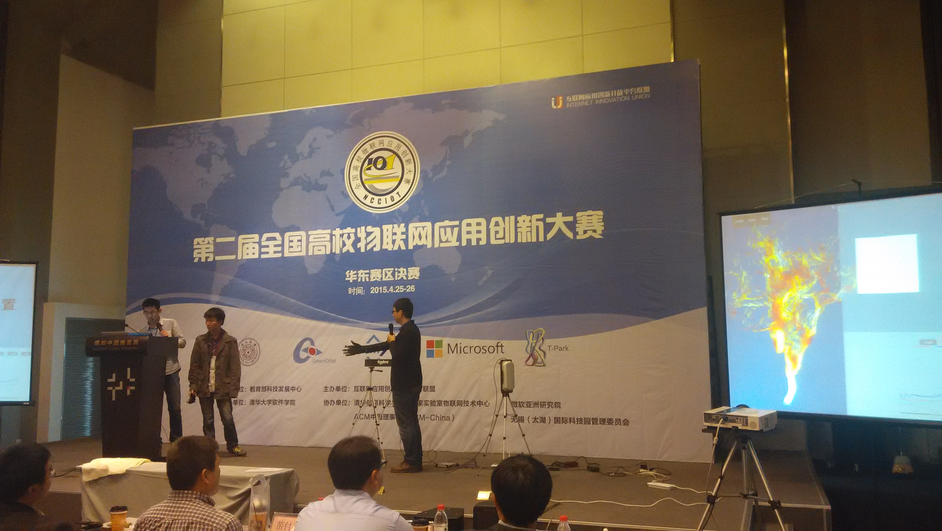 4月25日,第二届全国高校物联网应用创新大赛创意赛华东赛区决赛在无锡新区感知中国博览园会议中心成功举办。此次华东赛区决赛共有包括上海交通大学、浙江大学、blh漫画 、解放军理工大学、南京理工大学、南京邮电大学、苏州大学等在内的几十所高校参加。来自我系分布式计算团队(成员:孙健强、蔡庆亮、王楚豫;指导教师:谢磊、陆桑璐),凭借“ RF-Glove:基于RFID的高精度隔空交互系统”,从华东赛区百余支优秀队伍中脱颖而出,夺得华东赛区最高奖一等奖。 本次赛事由教育部科技发展中心主管、互联网应用创新开放平台联盟主办、清华大学软件学院承办、清华信息科学与技术国家实验室物联网技术中心、 ACM中国理事会、无锡(太湖)国际科技园管理委员会共同协办。 我系分布式计算团队的“RF-Glove”系统,基于RFID的信号强度和相位数据,合理利用RFID在真实环境下的一些特性,完成了2~5cm级别的手指感知,并通过感应手套隔空弹奏“两只老虎”及手势控制图这两个展示,让现场掀起了一阵小高潮,最终征服了在场的评委和观众。RF-Glove系统不仅仅挑战了相关学术领域的技术难题,而且提供了一种轻量级和无线化的隔空交互方案,弥补了市场现有产品的不足。目前,该团队正在进一步的完善系统,将代表华东赛区参加全国总决赛。 具体赛事链接请参考: //iotcompetition.org/2014/new_150427_2.html